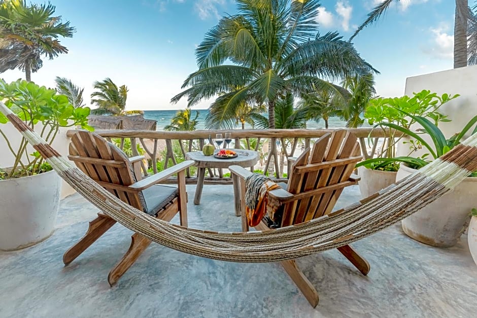 Delight your senses with the hotel’s onsite restaurant, unwind with a soothing massage, or dance to live music performances — all while surrounded by tropical gardens and the rhythmic sounds of the ocean. The hotel’s thoughtful amenities, including free Wi-Fi, room service, and private parking, make your stay seamless and enjoyable. From sunbathing on the terrace to exploring nearby attractions, Ahau Tulum - Beachfront Hotel invites you to experience the best of Mexico’s Quintana Roo coastline.